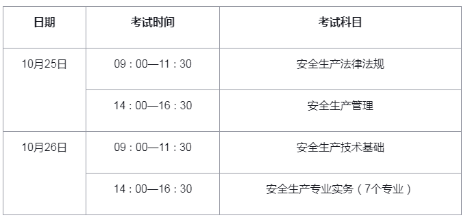 2025年中级注册安全工程师考试时间已确定为10月25日-26日,考试分4个半天进行,具体安排如下: