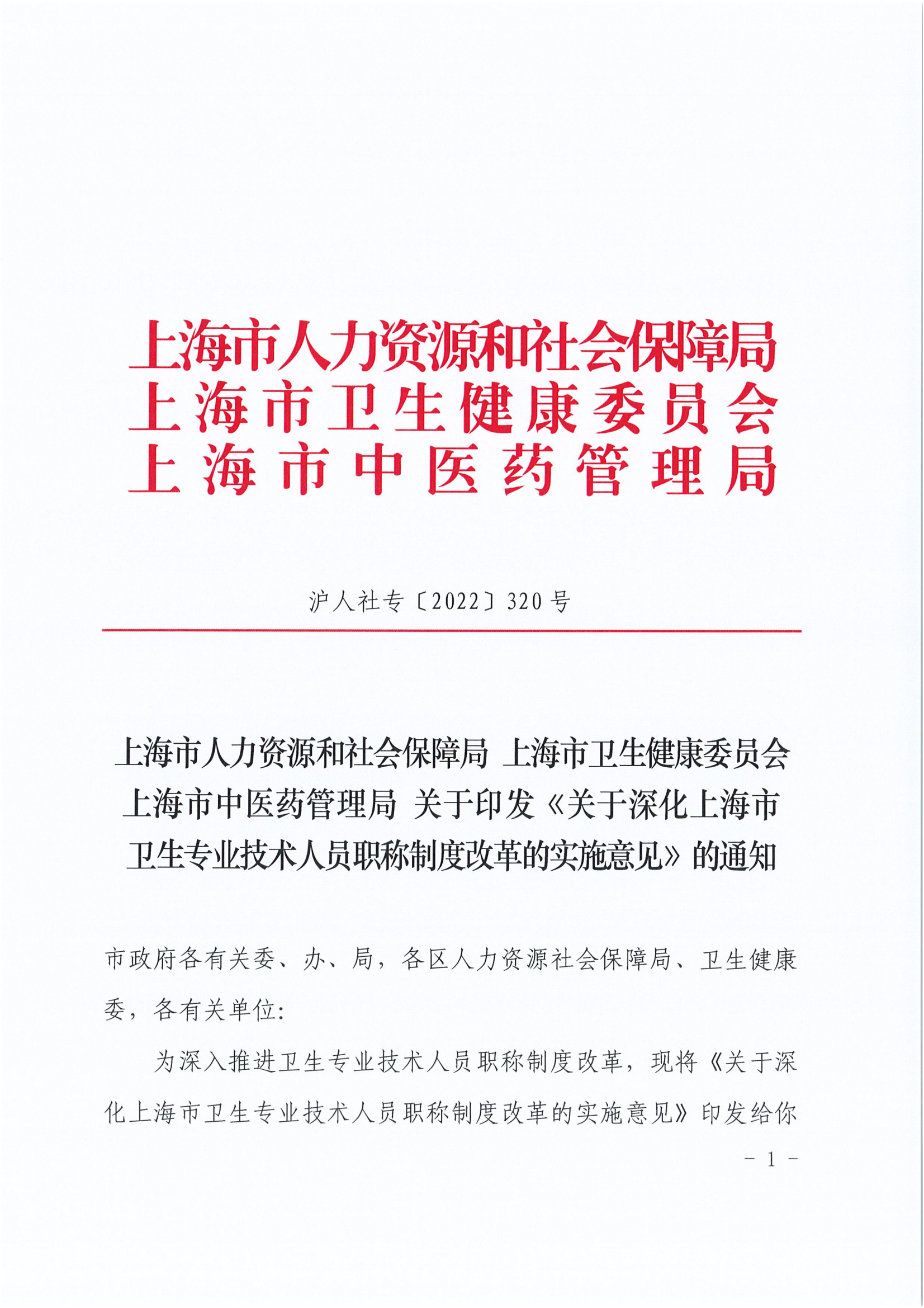 1-沪人社专〔2022〕320号(上海市人力资源和社会保障局 上海市卫生健康委员会上海市中医药管理局 关于印发《关于深化上海市卫