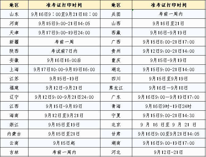 具体准考证打印时间,要以考试当地的通知要求为准。