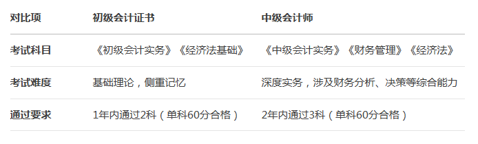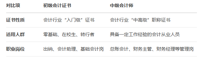 中级会计师和初级会计证书的区别是什么?