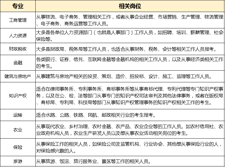 经济师不同专业适用岗位或行业如下表,大家可作参考: