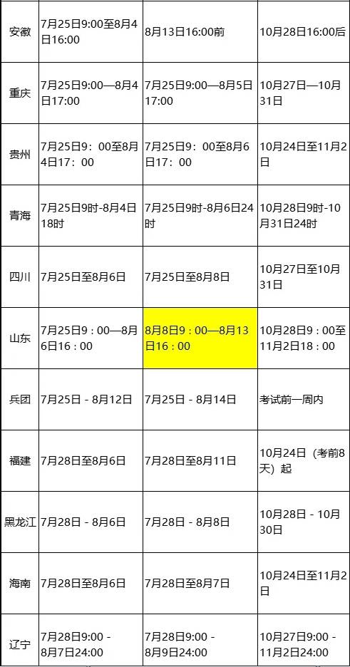 8月4日17:00截止,江西、重庆、贵州;
