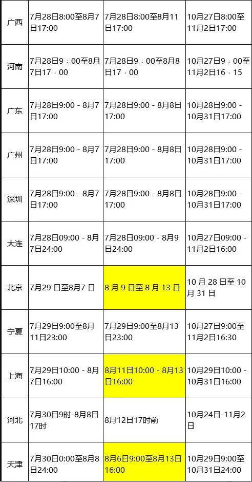 8月7日17:00截止,广西、河南、广东、广州、深圳;