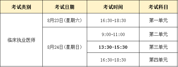 根据2025年医师资格考试公告,2025年医师资格医学综合部分的考试时间为8月22日-8月24日,不同级别和专业类别的医师资格医学综合部分的考试时间安排如下: