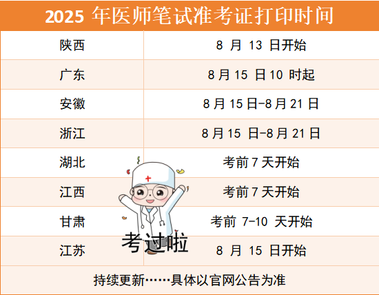 2025年08月11日 来源:来学网2025 年医师资格综合笔试时间即将开始,牢记以下时间!