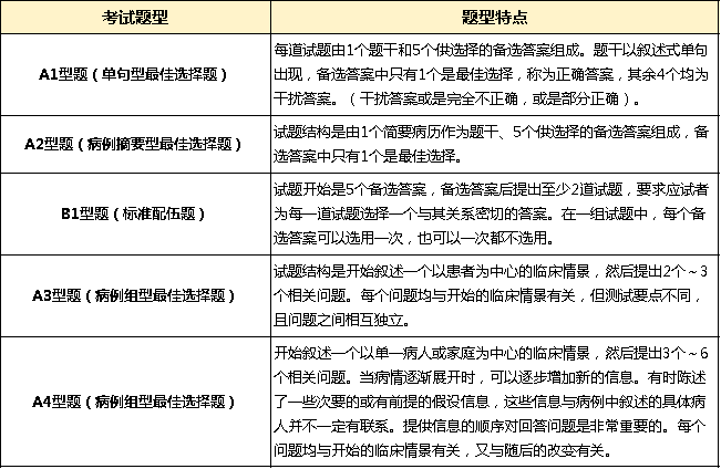 2025年临床助理医师医学综合部分的考试,一共考300道题,分为两个单元进行考试,考试题型全部都是客观题。具体考试题型分为A1、A2、A3/A4、B1题型,不过执业助理医师考试会适当减少或不采用A3/A4型题。不同考试题型特点汇总如下: