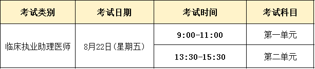 2025年临床执业助理医师医学综合部分的考试时间为8月22日,具体考试时间安排如下: