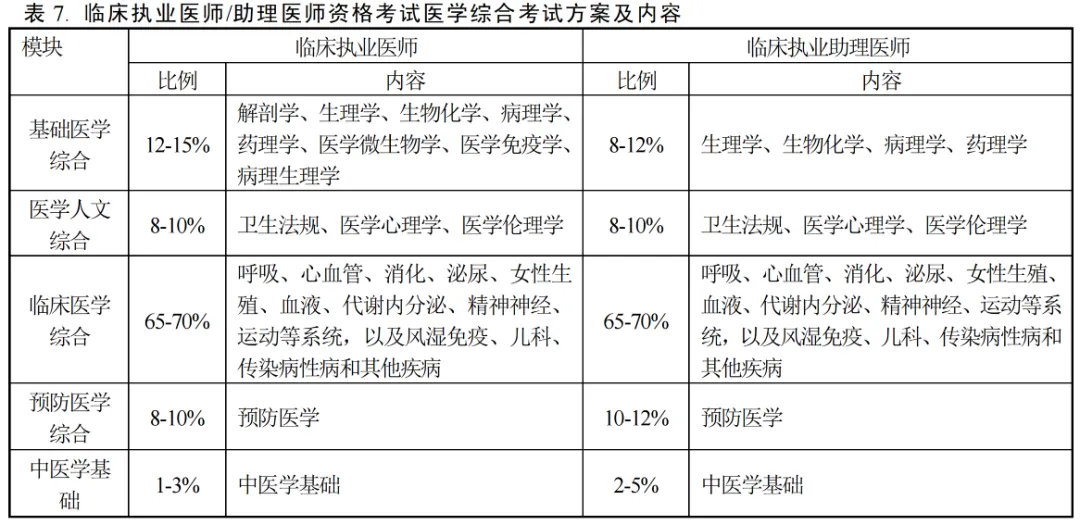 具体到临床执业助理医师医学综合考试,考试共分为五大模块,具体考试内容及分值比例如下: