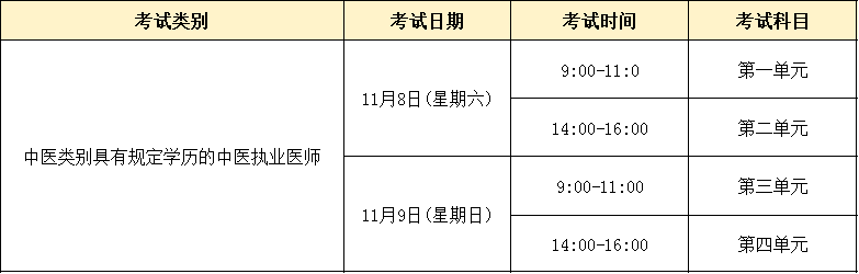 中医类别少数民族医仍采用纸笔作答的方式,具体考试时间安排如下: