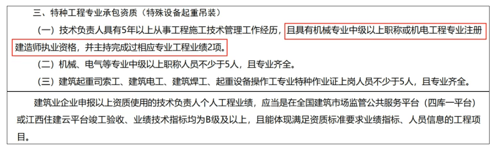 三、特种工程专业承包资质(特殊设备起重吊装)