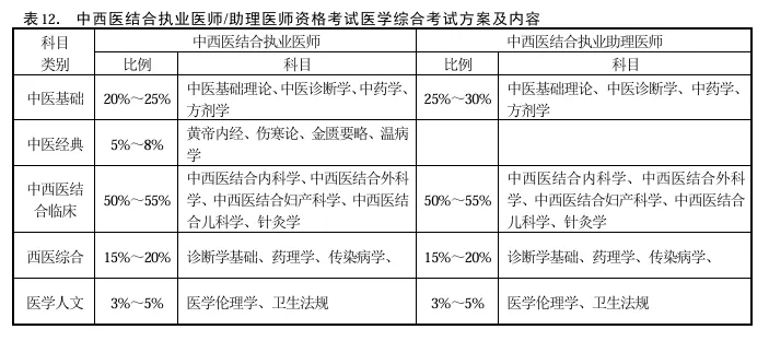 占比50%-55%,考试科目包括中西医结合内科学、中西医结合外科学、中西医结合妇产科学、中西医结合儿科学、针灸学。