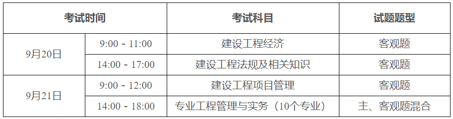 注:《专业工程管理与实务》科目分为建筑工程、公路工程、铁路工程、民航机场工程、港口与航道工程、水利水电工程、矿业工程、市政公用工程、通信与广电工程、机电工程10个