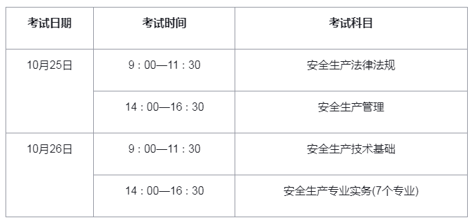 考试设《安全生产法律法规》(客观题)、《安全生产管理》(客观题)、《安全生产技术基础》(客观题)、《安全生产专业实务》(主客观题)4个科目。其中《安全生产法律法规》《安全生产管理》《安全生产技术基础》为公共科目;《安全生产专业实务》为专业科目,分煤矿安全、金属非金属矿山安全、化工安全、金属冶炼安全、建筑施工安全、道路运输安全和其他安全7个专业类别。