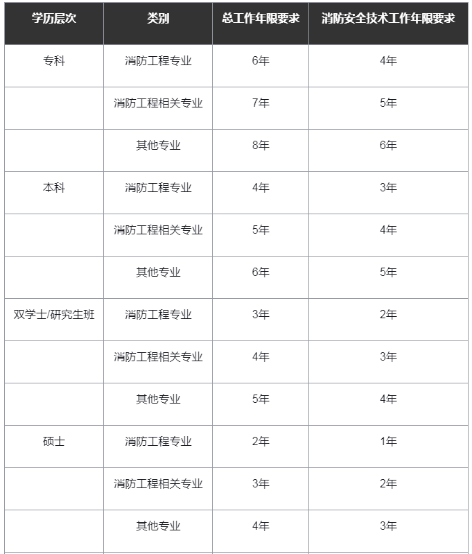 专业分类包括消防工程、相关专业(如电气工程、建筑学等)及非相关专业。
