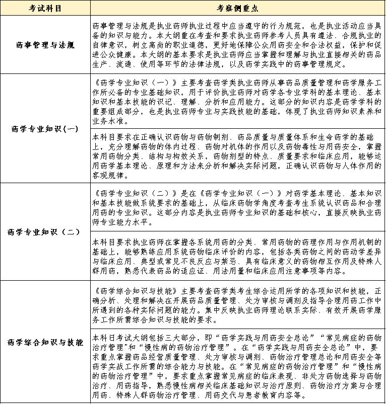 根据考试大纲,2025年执业西药师考试各科目的考察侧重点,来学网为大家汇总如下: