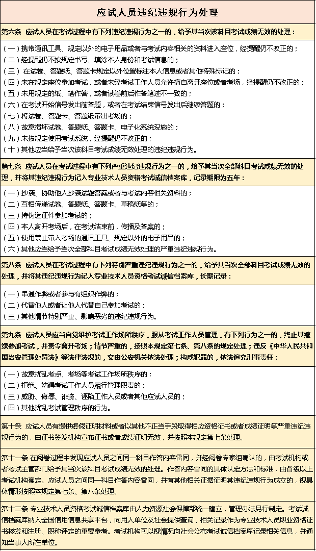 根据《专业技术人员资格考试违纪违规行为处理规定》(中华人民共和国人力资源和社会保障部令 第31号 ),参加中级会计考试人员,如有违纪违规行为,成绩将作无效处理,情节严重的甚至会受到法律法规的严处。具体违纪违规行为处理如下:
