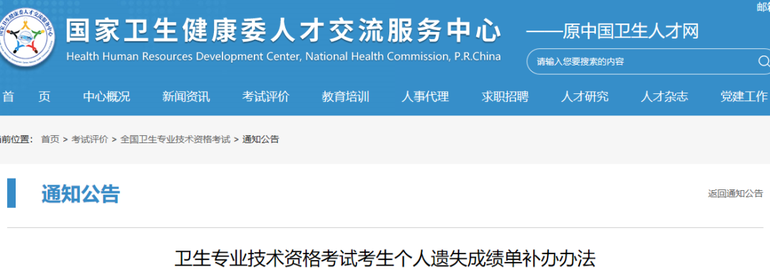官方通知 | 卫生专业技术资格考试成绩单补办办法