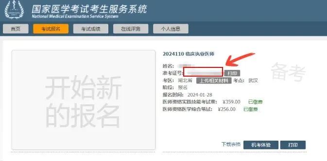 现在快去官网记录自己的准考证号!登录“国家医学考试网”官网,在“考生服务系统”中,考试报名界面可以看到自己的准考证号!