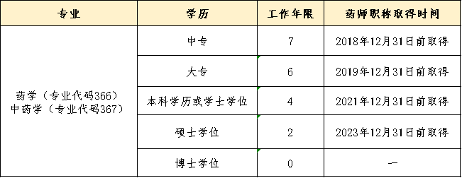 3、具备大学本科学历或学士学位,取得药师职称后,从事本专业工作满4年