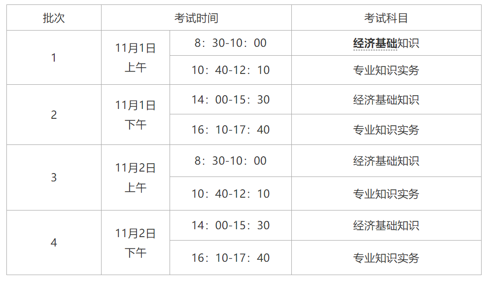 舟山2025年中级经济师考试时间