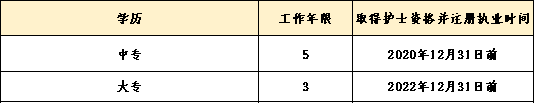 不同学历报名参加初级护师考试需要的工作年限对照如下表: