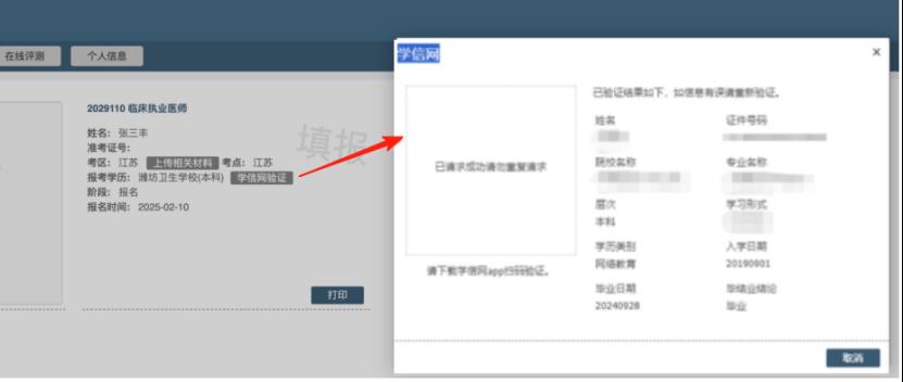 持2001年以来国家承认的各类高等教育学历证书报名的考生均需通过学信网扫码授权进行学历验证。如有多个学历,APP上选择的学历应与报名时填报的学历保持一致。若对应错误,可重新扫码验证进行更正。