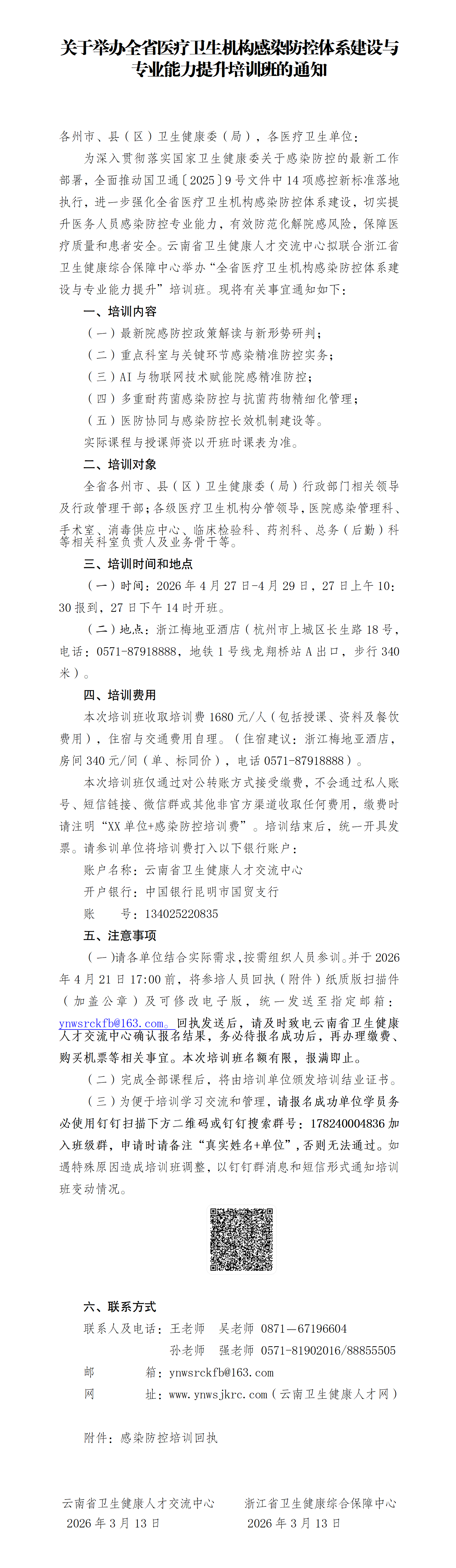 关于举办全省医疗卫生机构感染防控体系建设与专业能力提升培训班的通知