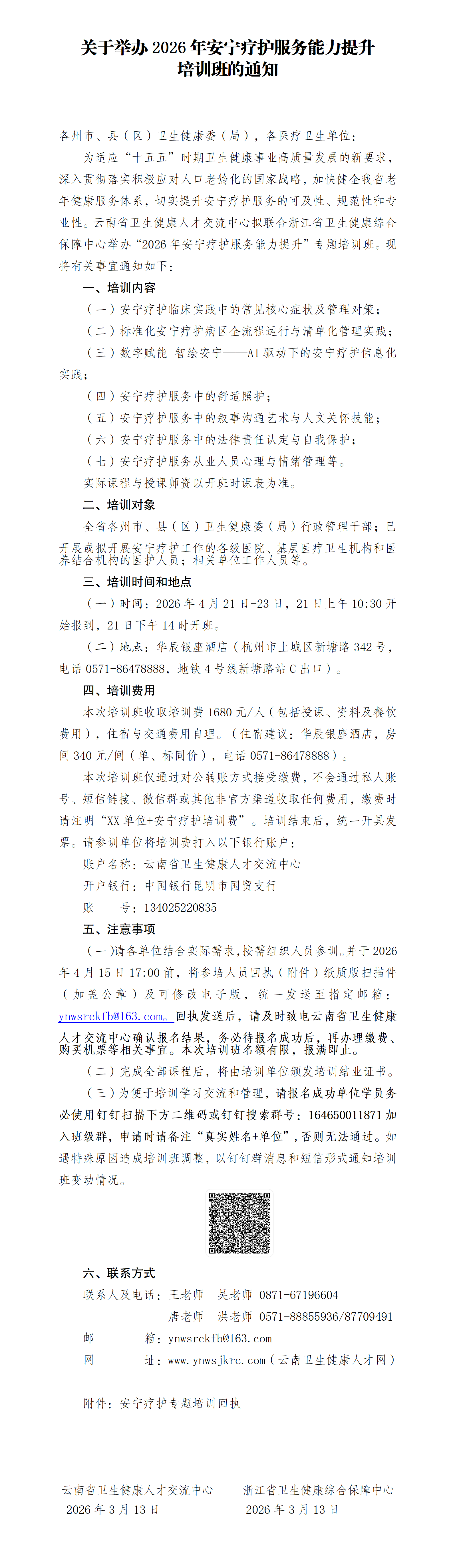 关于举办2026年安宁疗护服务能力提升培训班的通知