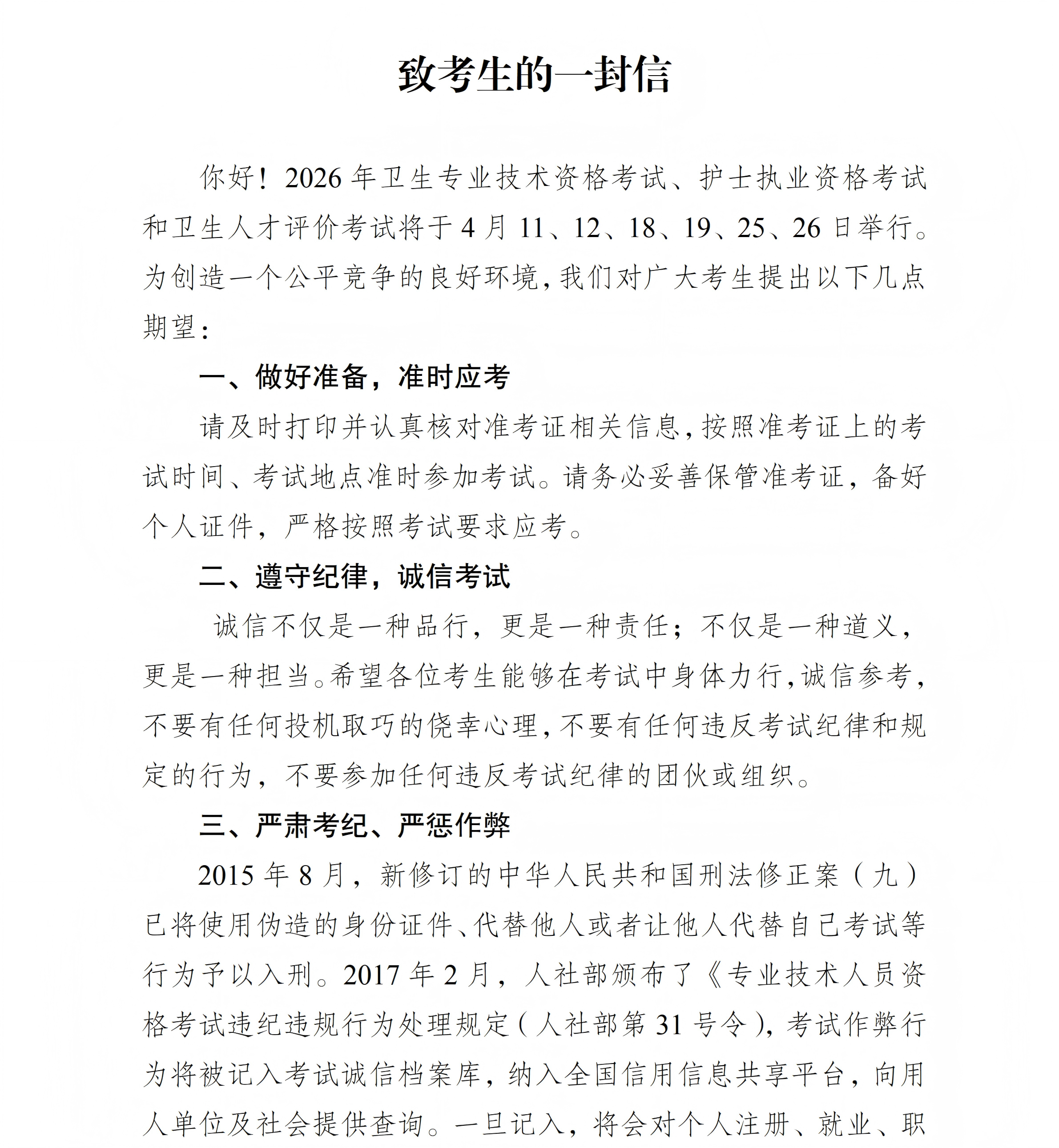 致考生的一封信