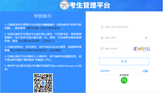 考生在规定期限内,登陆国家卫生健康委人才交流服务中心官网(www.21wecan.com),按要求打印准考证。(打印网址:https://socialexam.21wecan.com/#/login)