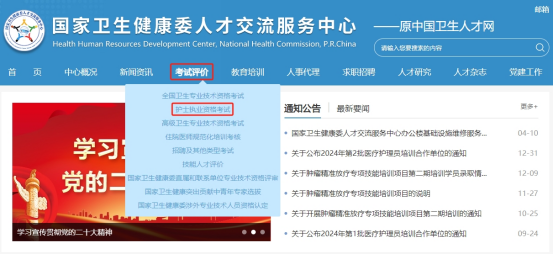 1.登录考生管理平台登录国家卫生健康委人才交流服务中心网站(www.21wecan.com),在“考试评价”栏目内选择相应的考试。