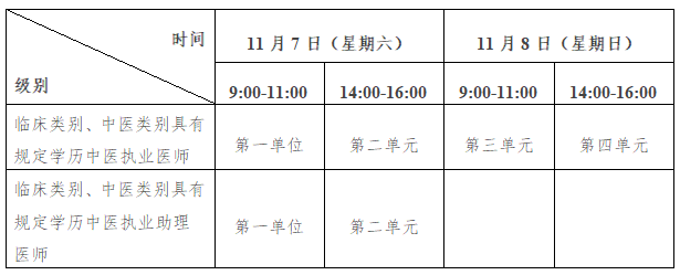 考试实行计算机化考试,军队现役人员、文职人员加试军事医学,院前急救岗位和儿科专业加试相应内容。统一考试时间如下: