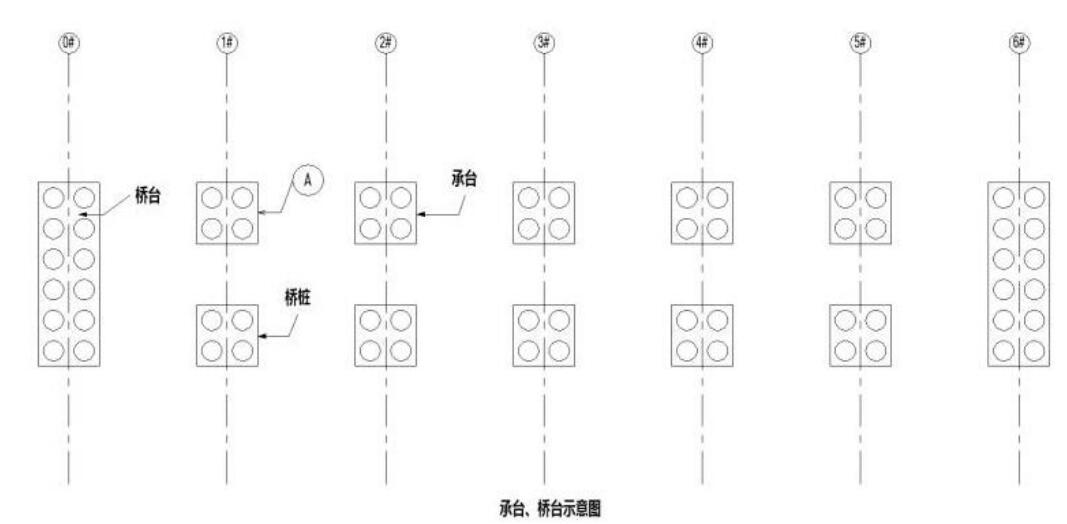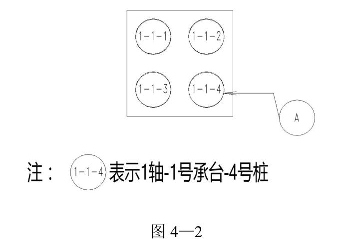 位置如图 4—1 所示,承台的桩位编号如图 4—2 所示。