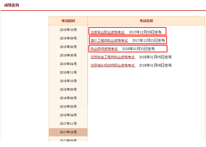 2019执业药师成绩查询入口为中国人事考试网。不少考试也是在这一平台发布考试成绩,12月17日、18日、19日连续三天有考试开通了成绩查询入口: