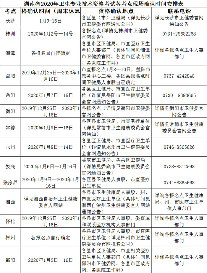 湖南省2020年卫生资格妇产科主治医师考试报名现场确认时间