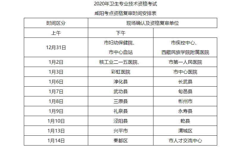 咸阳市妇产科主治医师考试报名现场确认时间于2019年12月25日起,各报名点根据实际情况确定现场确认时间。