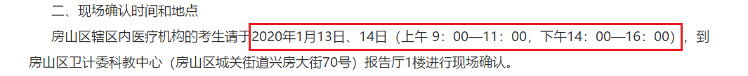 首都房山区2020年卫生资格妇产科主治医师考试报名现场确认时间