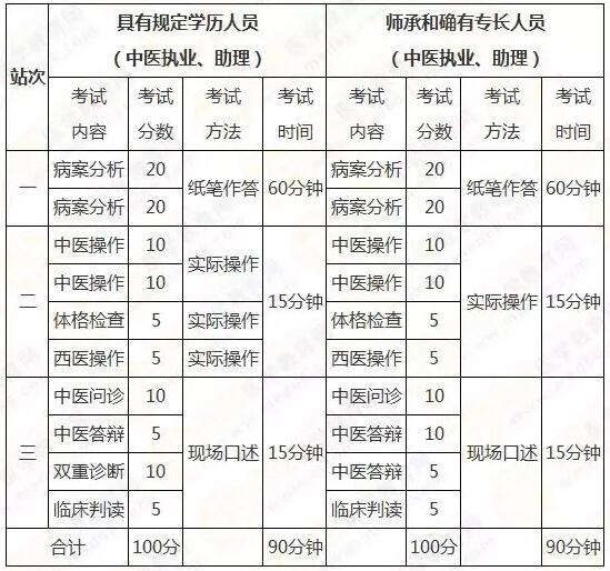 (1)考试内容:基本操作技能,包括中医临床技术操作、体格检查及西医临床技术操作。