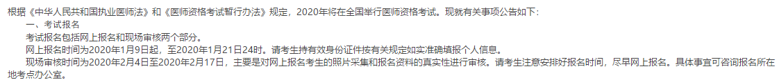 国家医学考试网公告陕西省2020年中医执业医师报名时间:1月9日起