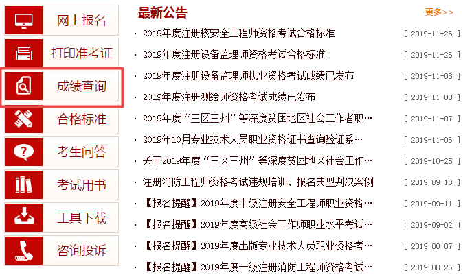 1、进入中国人事考试网(www.cpta.com.cn),点击左侧的成绩查询栏目!
