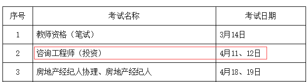 海南已定,2020年咨询工程师考试时间4月11、12日!
