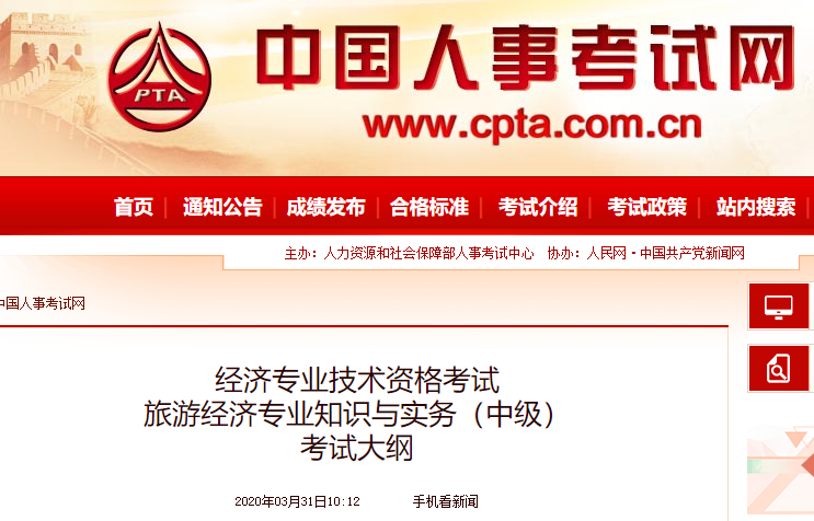 中国人事网发布2020年中级经济师《旅游经济》考试大纲