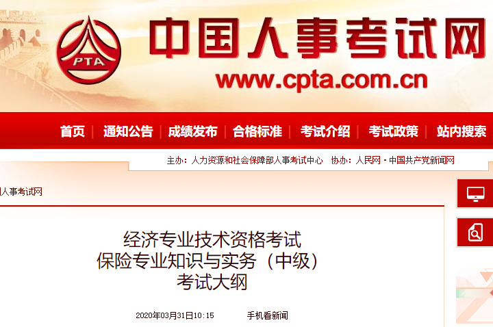 中国人事网发布2020年中级经济师《保险经济》考试大纲