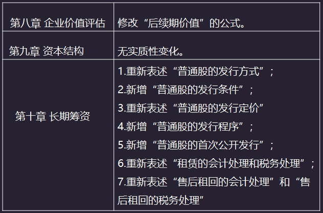 解读2020年注册会计师《财务成本管理》教材变化内容:第八章到第十章