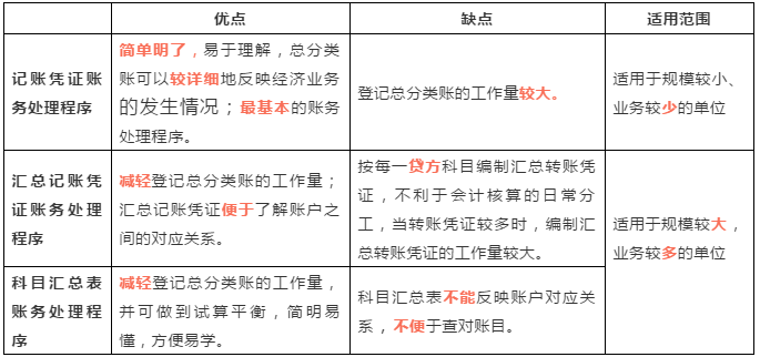 【基础知识】2020年初级会计职称《初级会计实务》常考内容:三种账务账务处理程序优缺点、适用范围