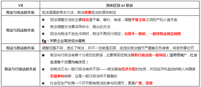 【提示】重点是税法与民法、行政法的关系,其中税法与行政法的关系较难理解,因为二者关系密切,所以需要加深区分。