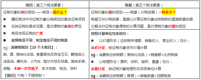 征税对象是区别不同税种的重要标志,要熟练掌握。税目和税基是解决后面『税率』计算基础,必须融会贯通。