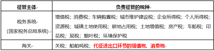 税收征收管理范围划分: