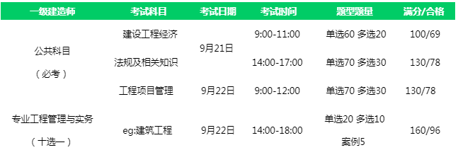 一级建造师考试科目、时间、题型题量