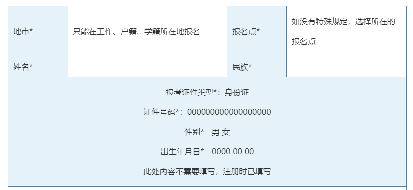 2、报考人员按网上报名系统提示逐步操作,如实填写每项报名信息并仔细核对。